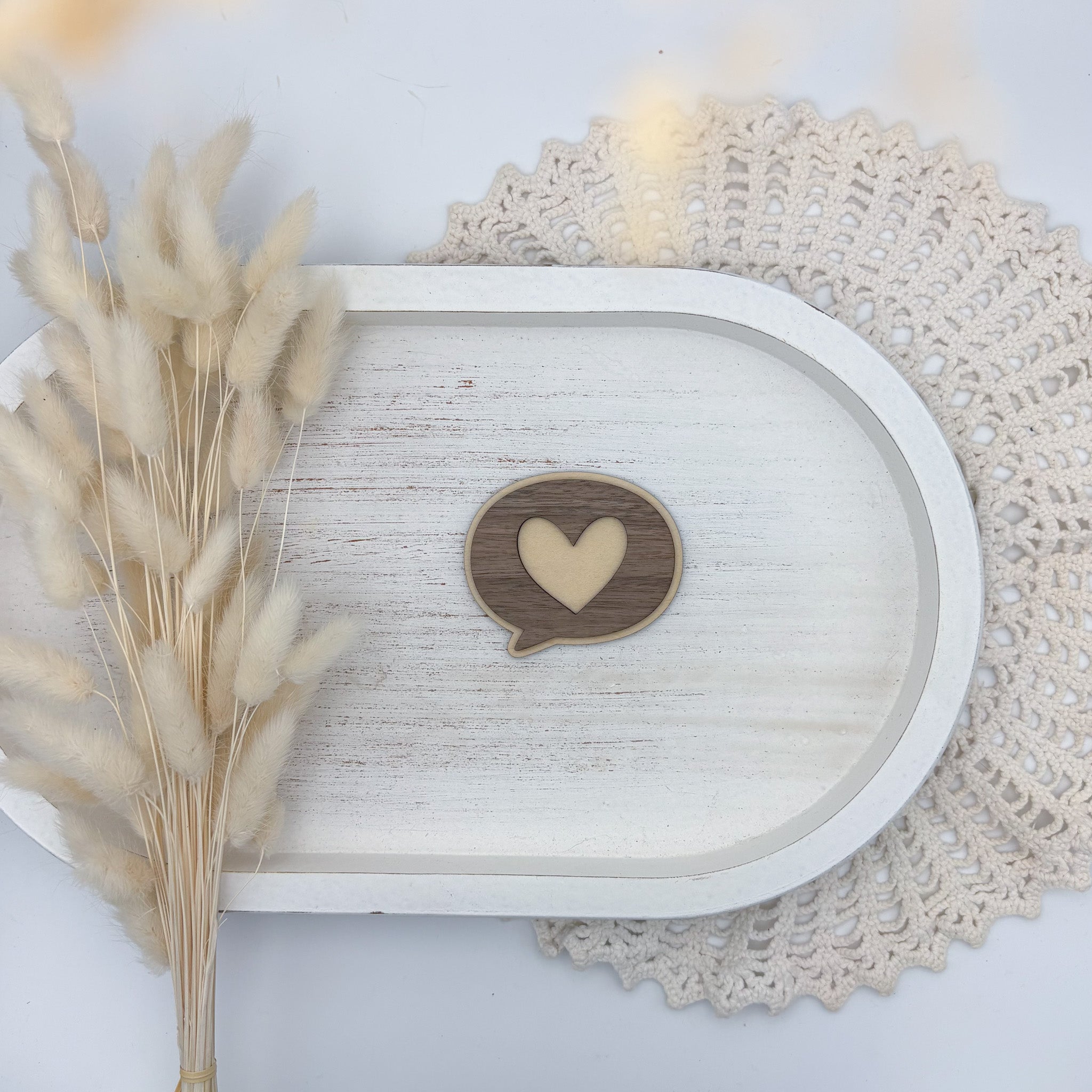 Alle Deko Objekte werden von uns mit dem Laser produziert und nachbearbeitet. Du erhältst keine Massenware, sondern ein liebevoll handgefertigtes Produkt. Holz ist ein Naturmaterial - es kann daher unterschiedliche Maserungen oder Asteinschlüsse aufweisen oder leicht in der Farbe variieren. Das ist kein Grund für eine Reklamation. Auch die schwarzen Ränder, die durch den Laserprozess entstehen, stellen keinen Reklamationsgrund dar.